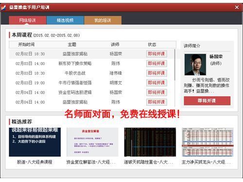 益盟操盘手主要面向个人投资者研发,自2002年面世以来,历经12年升级优化,已日臻完善。新版操盘手软件全新升级,无需注册即可使用,终身免费!您可免费体验L2个股数据、主力增仓榜、板块监测、操盘线等多个经典功能。 同时,登录益盟操盘手客户端,还可【免费参与 每周2次|名师会场】,在线直播授课,同步指导,让你与专家高手0距离接触!