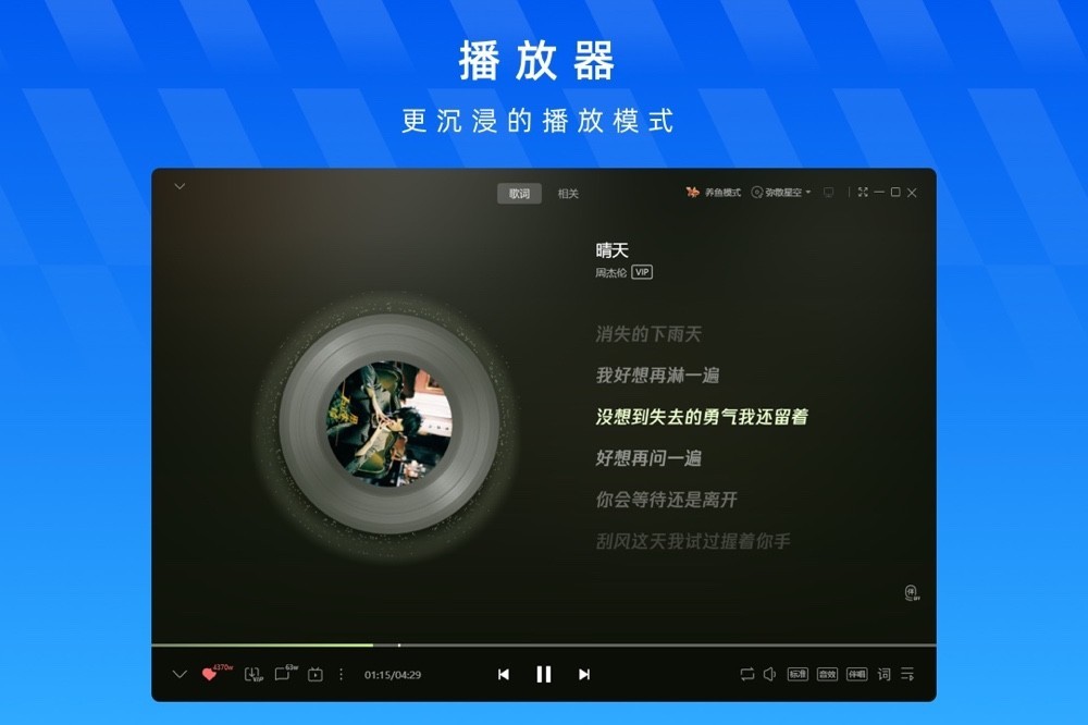 1、桌面歌词也支持养鱼啦,快来试试吧