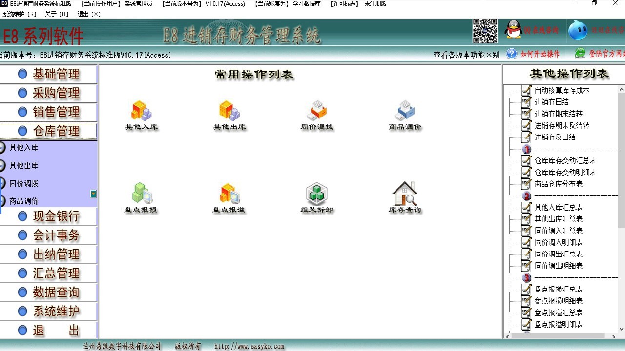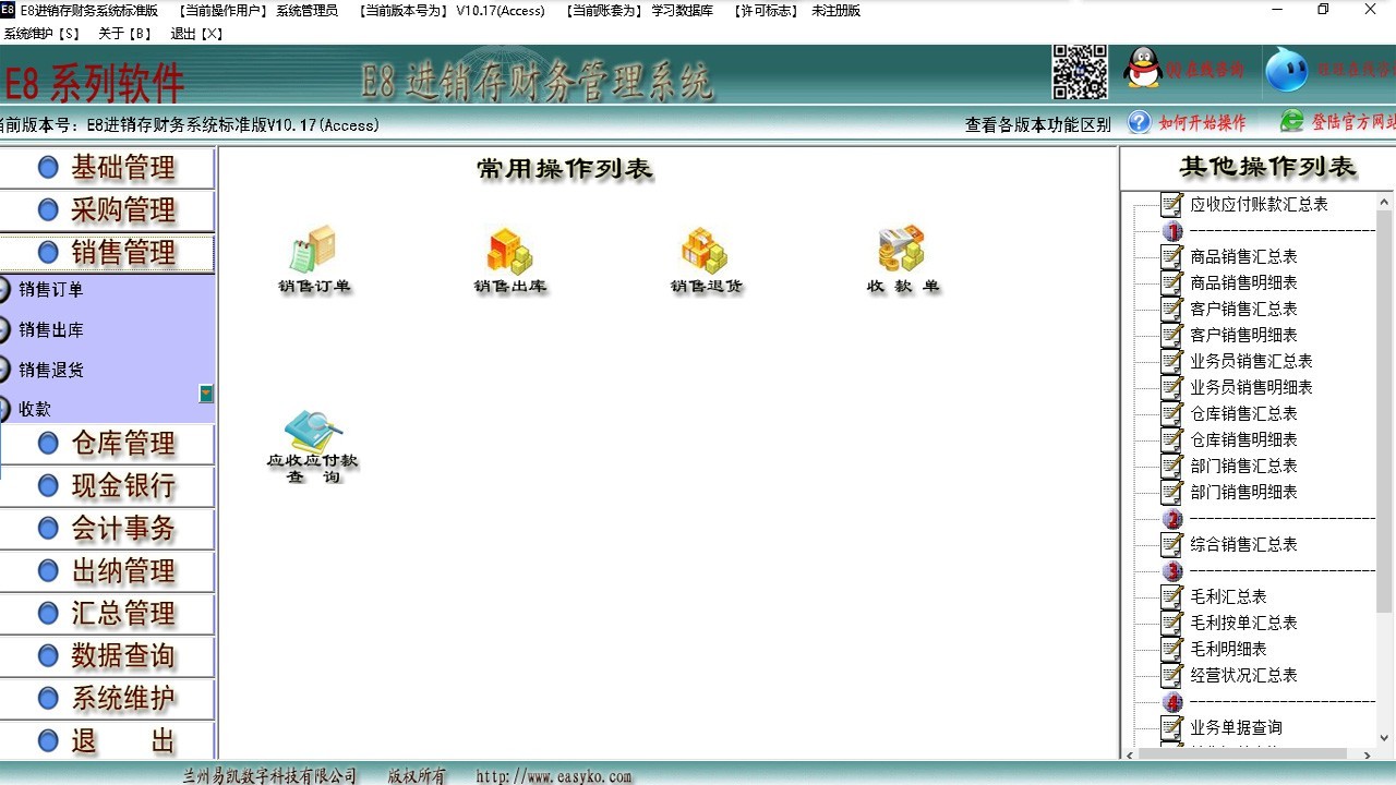 E8进销存财务软件标准版是将进销存财务四位一体化的软件,特别为中小企业设计,它的功能范围包括基础管理、入库管理、出库管理、退换货管理、仓库管理、现金银行管理、库存管理、会计事务、出纳管理及各类汇总统计报表,并配备有功能完整、全面的经营报告系统(收支明细表、进货明细表、销货明细表、库存一览表、货品进销一览表、经营状况表、明细帐、总帐、三大会计报表等)。具有超强穿透力的查询功能,使您可以追溯到(发)生过的任何一笔业务,安装后马上可以开始使用,是一款即装即用的软件。它的功能覆盖了中小型企业财务管理和货品进销存管理的方方面面,并且提供了完整的财务系统,是一款非常实用的软件。同时本软件具有最低销售限价功能、客户最大欠款限制机制、负数出库与非负数出库自动切换、出库入库价格跟踪、多种库存成本核算设定、自动打折设置等诸多功能。本软件可以自动将进销存单生成符合会计制度的会计凭证,自动结转损益,自动生成各种符合会计制度的帐簿及会计报表。方便直观的辅助核算功能,用于满足不同操作习惯的人群。本系统采用图形导航,科学规范的业务流程,即使不懂软件的人,只要会点鼠标,按照提示只需录入单据,其他报表及汇总均是全自动生成。网络版中独特的通过普通宽带(如ADSL)连接远程数据库,轻松实现广域网(互联网)上数据共享操作,为用户节省巨大宽带租用费用。 功能特点: 1、真正实现进销存财务的一体化的经营管理软件; 2、简化经营管理流程、智能化、高效化设计、实现企业透明化、低成本管理; 3、业务功能全面、从采购、销售、生产到各种款项流动、均能直接生成凭证自动登入应收应付、现金银行、总帐,全部过程和企业财务自动连成一体; 4、仓库管理多样化、支持多个仓库的入库、出库、调拨、库存及多种库存成本核算方法设置功能; 5、财务功能全面、从凭证记帐、现金很行、应收应付、明细分类帐、总分类帐、科目汇总模块、财务报表等支持全方位标准财务做帐; 6、简单结帐按钮设计,一分钟实现企业期末自动财务结帐、结转、成本核算、自动生成销售报表、库存报表、企业财务报表等; 7、智能跟踪公司及个人盈利、各商品销售、退货数量、盈利率对比。提供各种商品报表、业绩报表、销售报表、收款报表、企业报表等; 更多.......